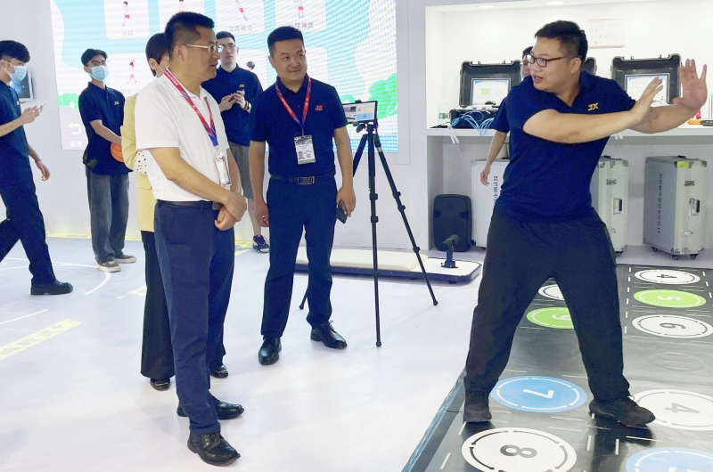 As a professional and scientific comprehensive service provider of sports and health solutions, Jiangsu jinnianhui SPORTS brought a series of intelligent products such as new physical education integration, physical health integration, sports park, and smart community to the exhibition. Among them, intelligent sports classrooms and physical fitness products have attracted a large number of spectators and experiences.